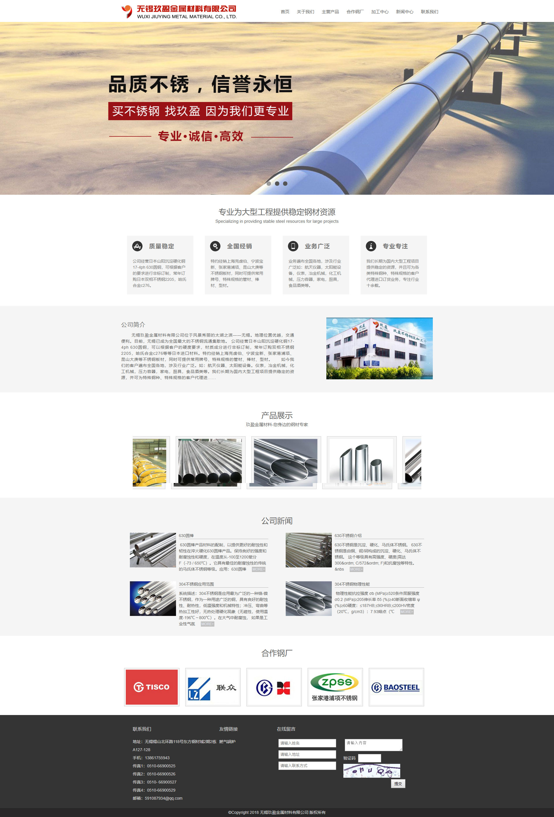 ?無錫玖盈金屬材料有限公司位于風(fēng)景秀麗的太湖之濱——無錫。地理位置優(yōu)越,交通便利。目前,無錫已成為全國(guó)最大的不銹鋼流通集散地。 公司經(jīng)營(yíng)日本山陽沉淀硬化鋼17-4ph 630圓鋼,可以根據(jù)客戶的硬度要求,材質(zhì)成分進(jìn)行非標(biāo)訂制,常年訂購(gòu)雙相不銹鋼2205,哈氏合金c276等等日本進(jìn)口材料。特約經(jīng)銷上海克虜伯、寧波寶新、張家港浦項(xiàng)、昆山大庚等不銹鋼板材,同時(shí)可提供常用牌號(hào)、特殊規(guī)格的管材、棒材、型材。