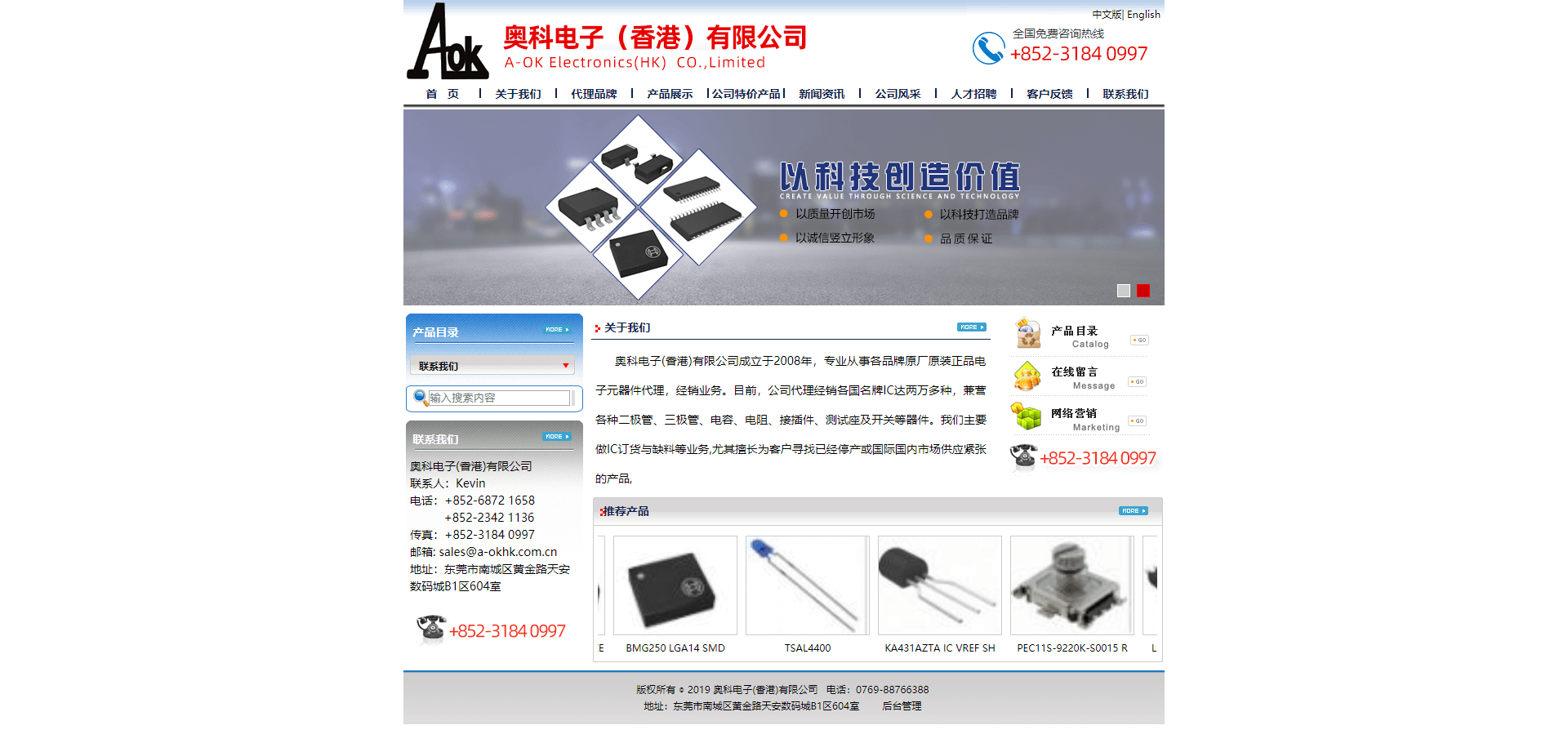 奧科電子(香港)有限公司成立于2008年,專業(yè)從事各品牌原廠原裝正品電子元器件代理,經(jīng)銷業(yè)務(wù)。目前,公司代理經(jīng)銷各國名牌IC達(dá)兩萬多種,兼營(yíng)各種二極管、三極管、電容、電阻、接插件、測(cè)試座及開關(guān)等器件。我們主要做IC訂貨與缺料等業(yè)務(wù),尤其擅長(zhǎng)為客戶尋找已經(jīng)停產(chǎn)或國際國內(nèi)市場(chǎng)供應(yīng)緊張的產(chǎn)品,,產(chǎn)品范圍有芯片,半導(dǎo)體,二三極管,晶體管和其它主動(dòng)被動(dòng)的材料,如:UTC、、ATMEL、ANPEC、ANALOGIC、AMS、AMP、AMD、ALTERA、AOS、Allegro、AKM、ON、NXP、microchip,NS、、TOS、FCS、ST、WINBOND,ISSI IR,SANYO,等300多種品牌,在歐美有超過5000多家的供應(yīng)商,,擁有強(qiáng)大的元器件供應(yīng)商網(wǎng)絡(luò),其中包括制造商、代理商、原裝中間商,儲(chǔ)存了超過5000萬條庫存,通過我們的供應(yīng)商網(wǎng)絡(luò),我們能為您全球用最短的時(shí)間找到你所需要的元器件。經(jīng)過多年的努力,已成為具世界性營(yíng)銷網(wǎng)絡(luò)的集團(tuán)公司。為加速國內(nèi)業(yè)務(wù)的發(fā)展,我們公司分別在東莞,香港和臺(tái)灣等主要城市設(shè)立了分支機(jī)構(gòu),可以便捷,靈活的做到國內(nèi)和海外交貨.本著“信譽(yù)第一,品質(zhì)第一”的服務(wù)宗旨、“熱情、誠信、負(fù)責(zé)”的工作信念,向廣大客戶提供價(jià)格合理、品質(zhì)優(yōu)良的產(chǎn)品,及有力的技術(shù)支持和快捷的售后服務(wù)。